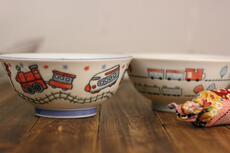 瑕疵 日式餐具 日本进口釉下彩 古伊烧 卡通电车5.0拉面碗